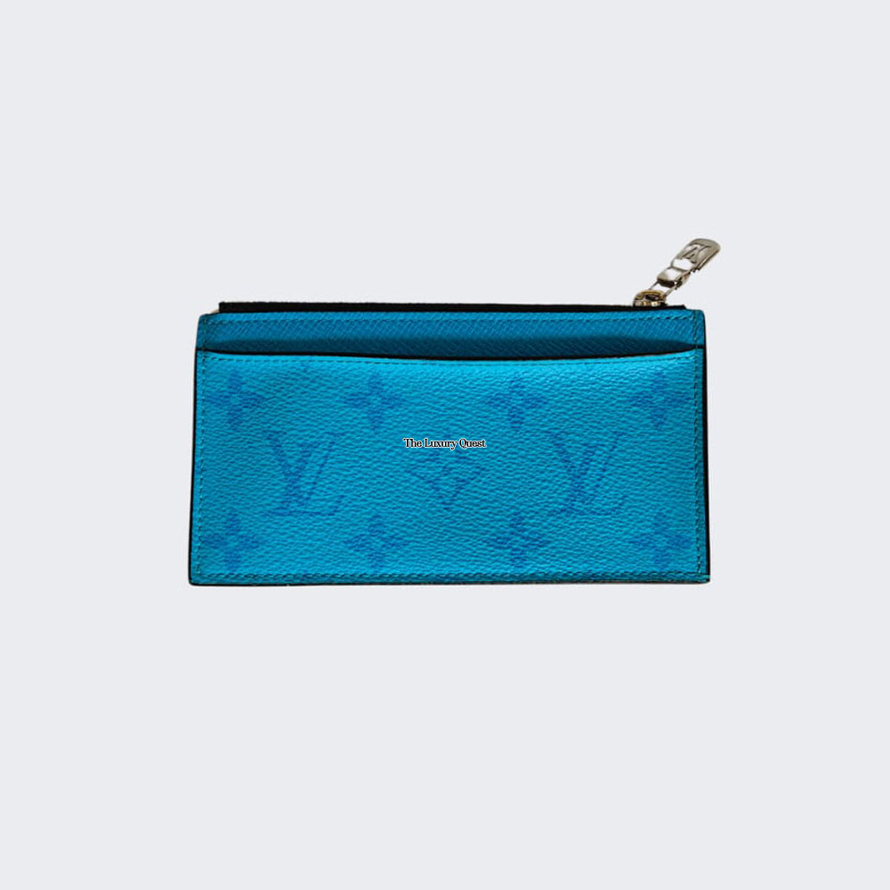 Material: Monogram coated canvas, Taiga leather Hardware: Silver-tone Color: Blue