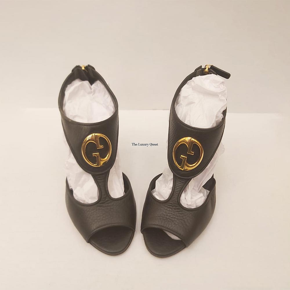 Made from black leather with gold coloured interlocking G hardware in the front. The footwear has a back zipper closure. These make for a perfect party wear heels !