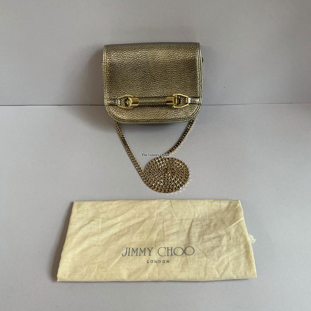 Made from metallic leather and textile lining with gold-tone hardware. It features a flap top opening with snap closure and a gold-tone chain strap. A beautiful crossbody for all your evening affairs.