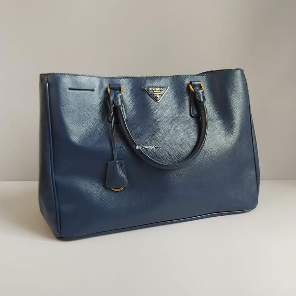 It is made of saffiano leather with gold tone hardware and comes with a key ring. The bag features brand logo in the front and comes with a large center compartment that makes this a perfect everyday bag