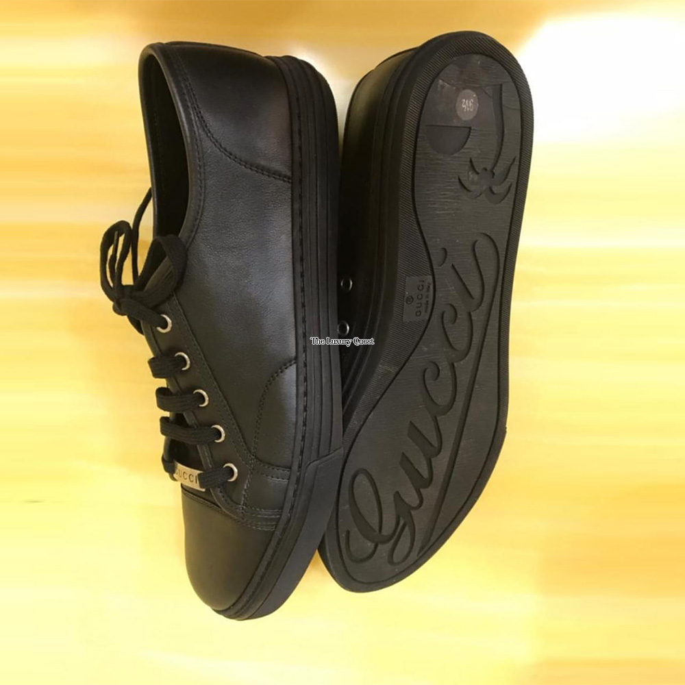 Made from black calfskin leather with lace tie ups and silver toned hardware. It comes in size 9.5 with the brand logo engraved on the metal plate in the front.